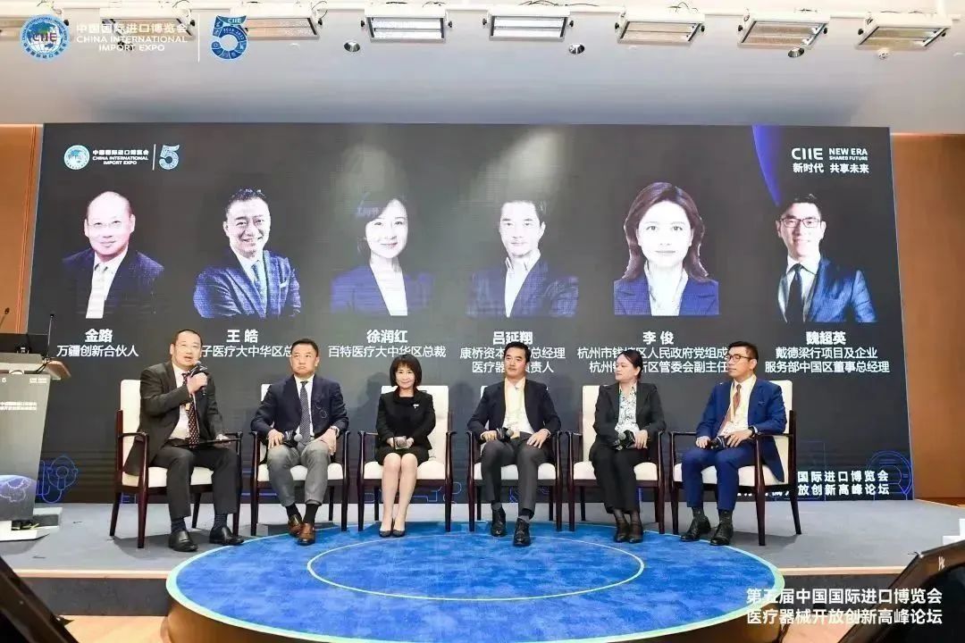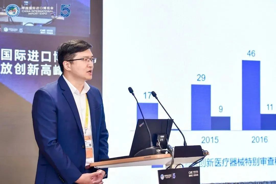 11月8日上午,第五届中国国际进口博览会医疗器械开放创新高峰论坛举办。本届论坛由中国国际进口博览局、国家会展中心(上海)主办,浙江省商务厅、进博会参展商联盟医疗器械专委会承办。商务部副部长、进博会组委会办公室主任、中国国际进口博览局局长盛秋平致辞,浙江省商务厅副厅长石琪琪推介浙江医疗器械产业发展环境和未来机遇。