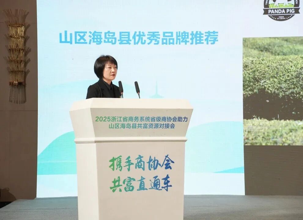 会上,省农产品流通行业协会、省商业总会、省餐饮行业协会、省开发区研究会及省商贸业联合会5家行业商协会代表作助力山区海岛县共同富裕建设案例分享;浙江正德和食品有限公司、浙江环码农业科技发展有限公司、浙江金华熊猫猪猪两头乌产业发展有限公司等企业代表现场推介。