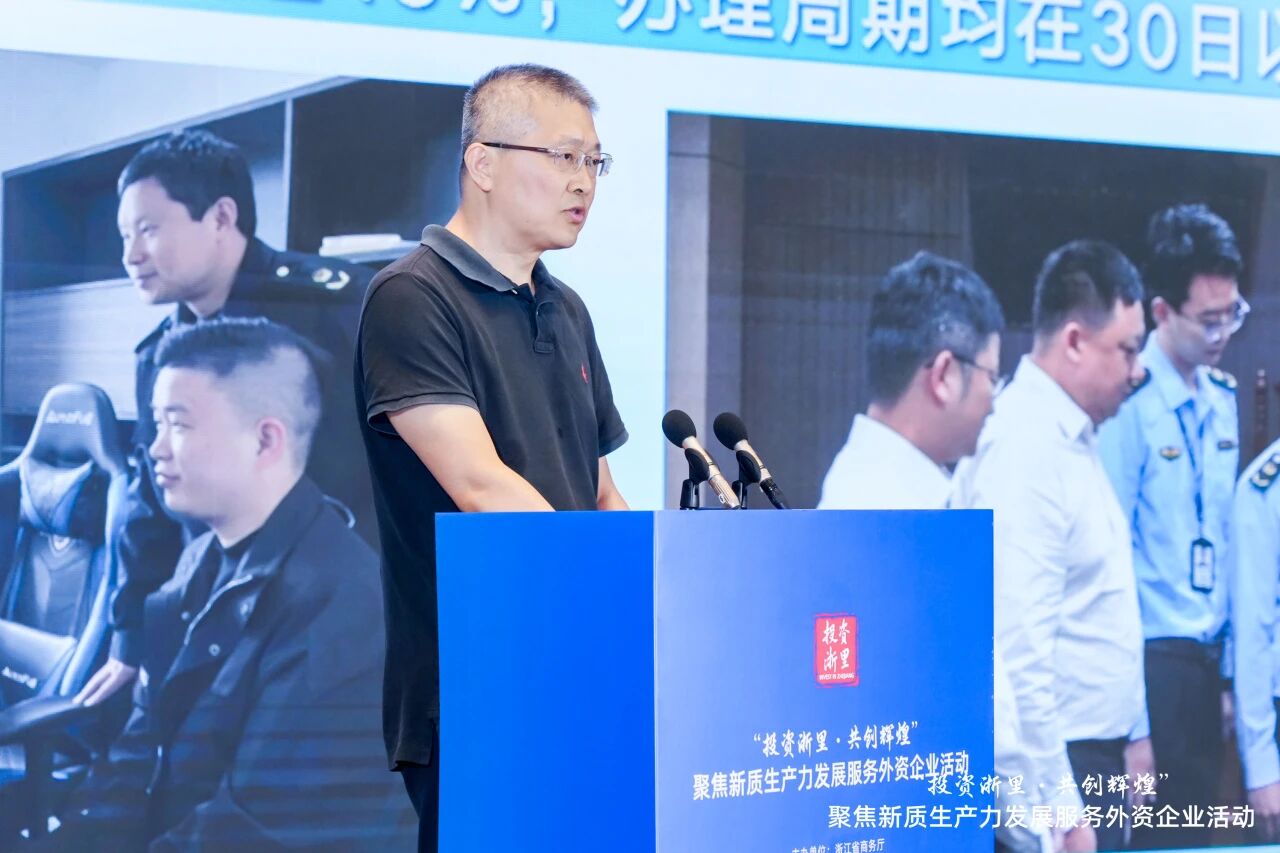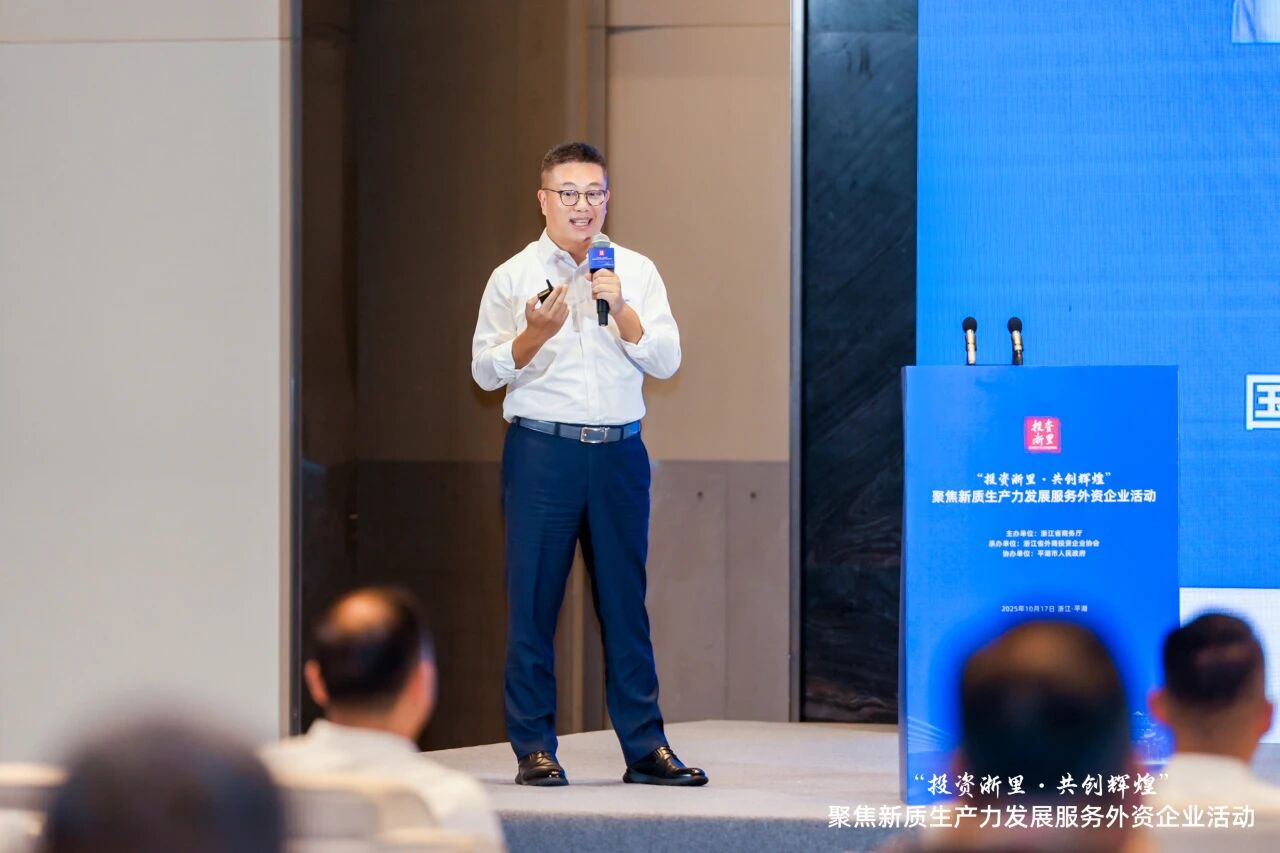 为贯彻落实推进高水平对外开放、建设高能级开放强省现场推进会精神,10月17日,由浙江省商务厅主办、浙江省外商投资企业协会承办的“投资浙里·共创辉煌”聚焦新质生产力发展服务外资企业活动在平湖成功举办。浙江省商务厅副厅长陆勇出席会议并致辞。活动汇聚政府机构、外资企业、本土龙头企业及专家学者等80余位代表,共探新质生产力发展机遇,共绘开放合作新图景。